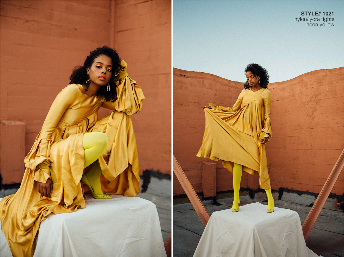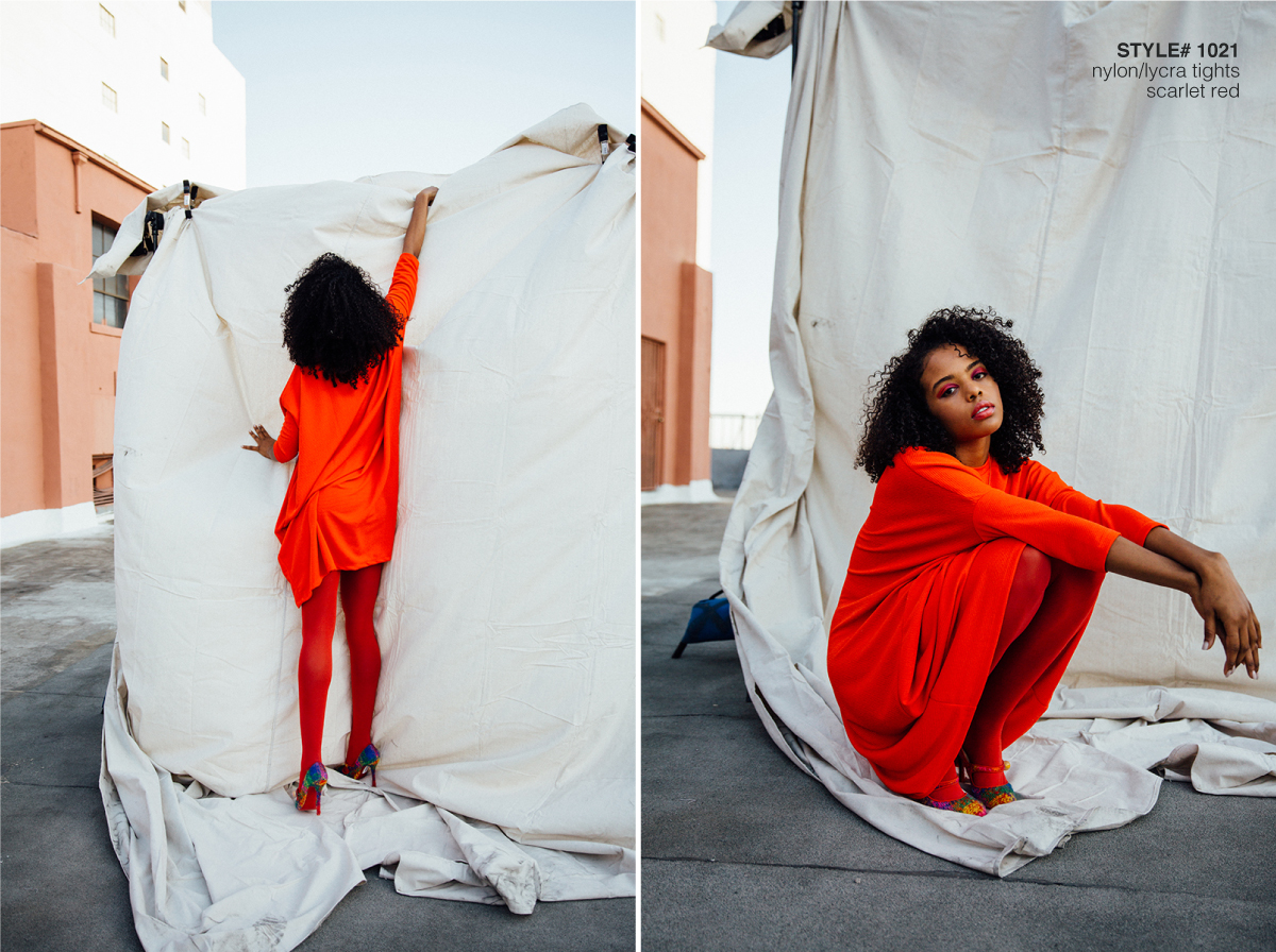 Style# 1021 – Nylon/Lycra Tights in Neon Yellow, Scarlet Red, Navy and Purple, Scarlet Red, Navy and Purple