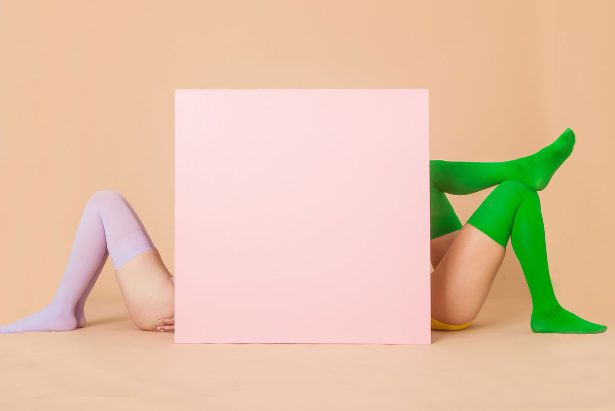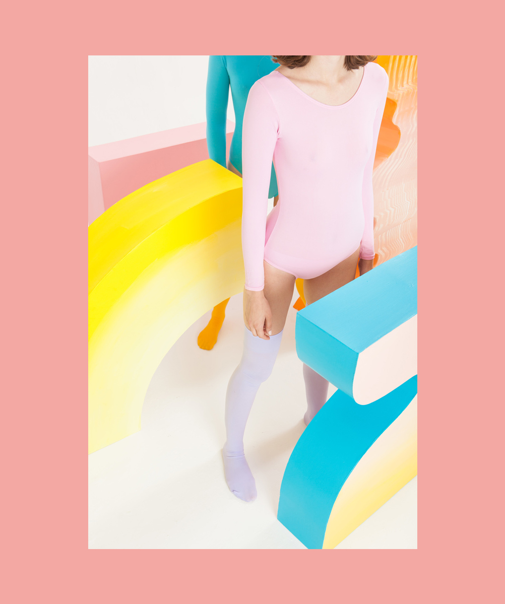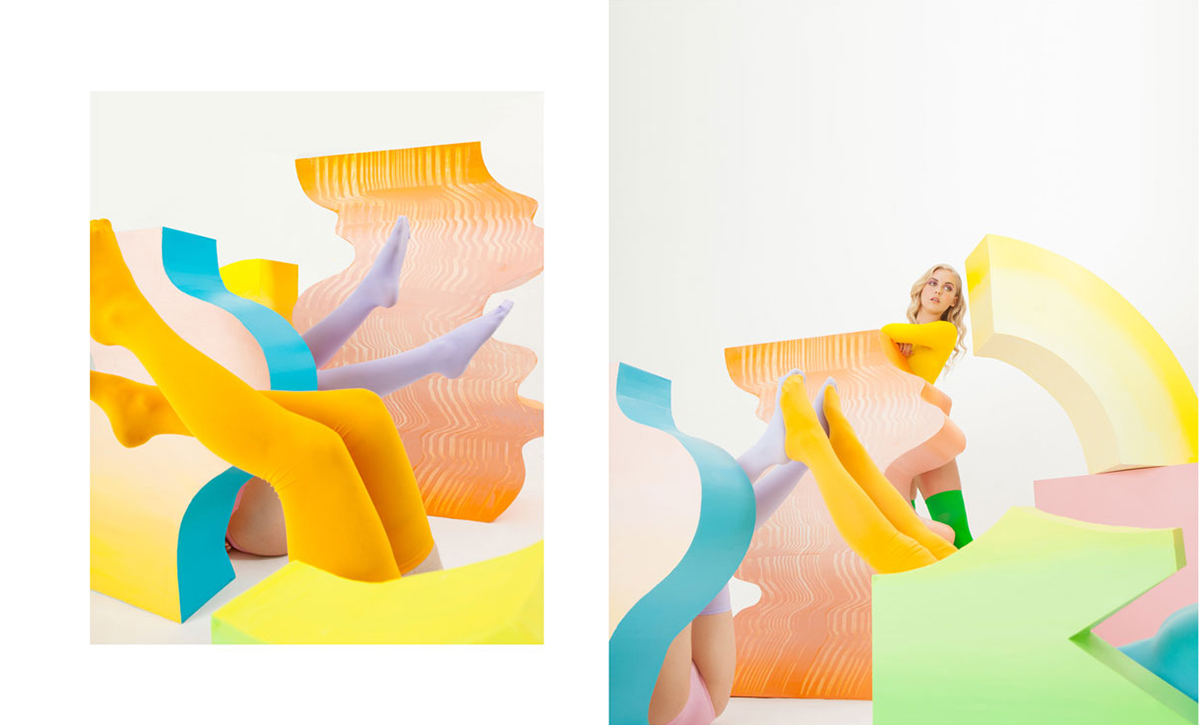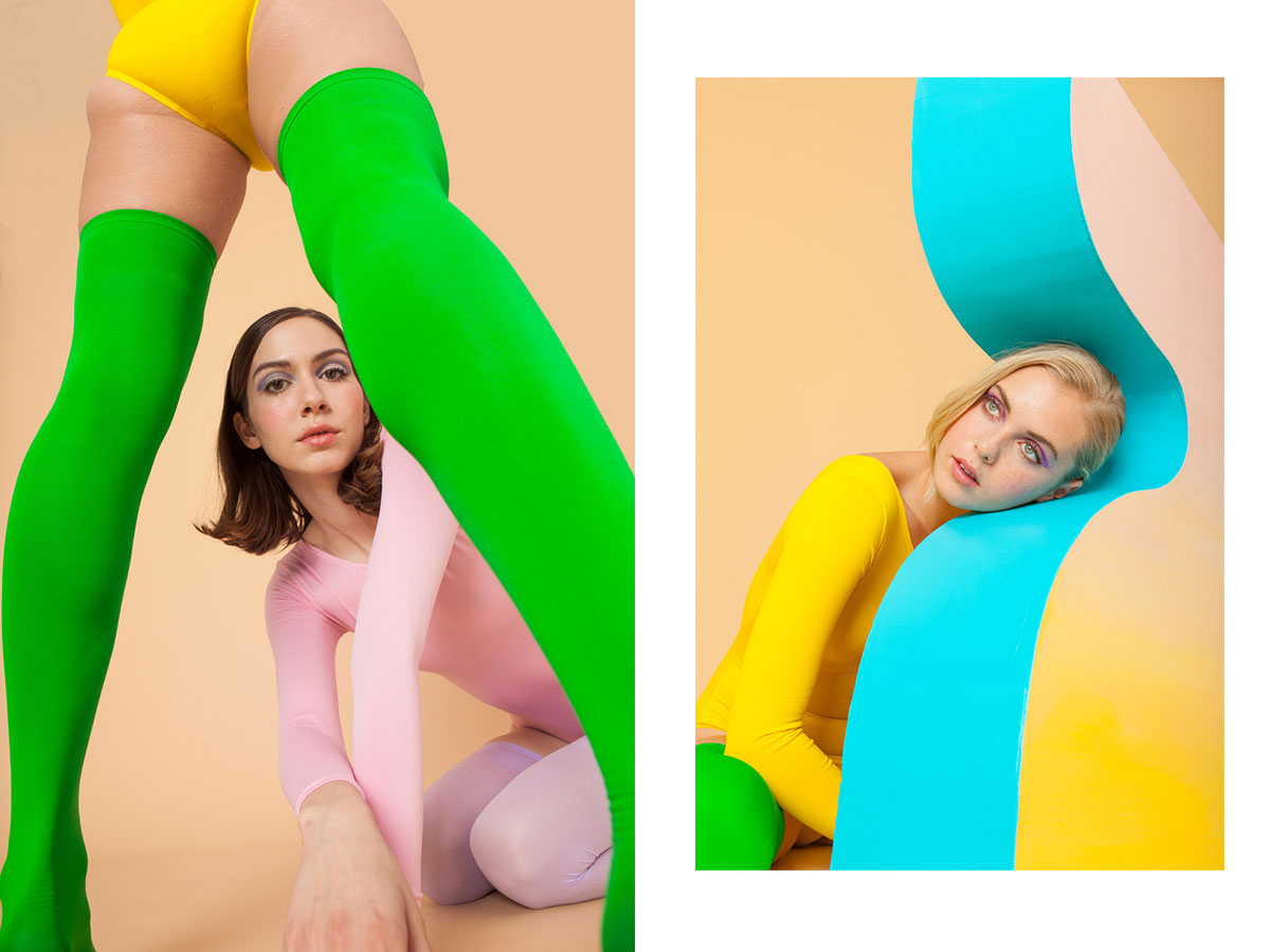 GM: I found We Love Colors by word of mouth. A friend of mine is wardrobe stylist and mentioned to me there’s a clothing brand that would be right up my alley. I was looking for something that would offer me a wide selection of colorful stockings and bodysuits, and We Love Colors was a match made in heaven. I immediately knew I had to use We Love Colors for my photoshoot called Legs.