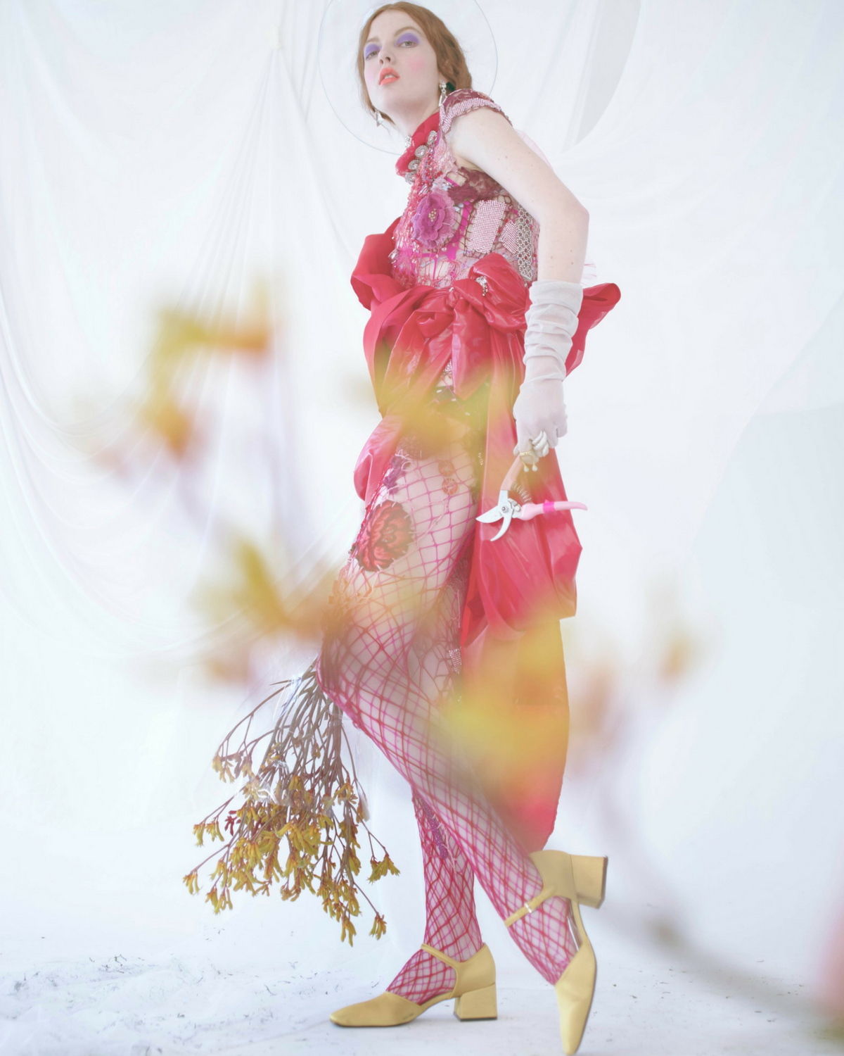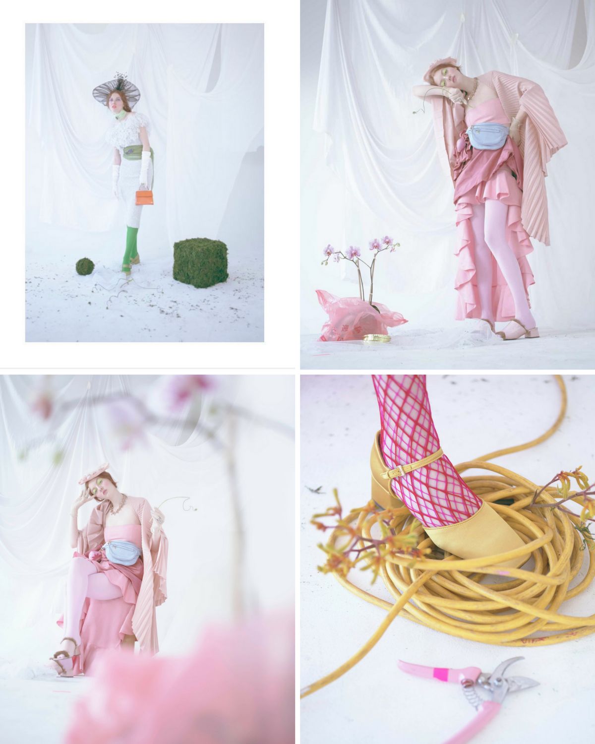 women in pastel dresses wearing green and pink tights and pink and red fishnets