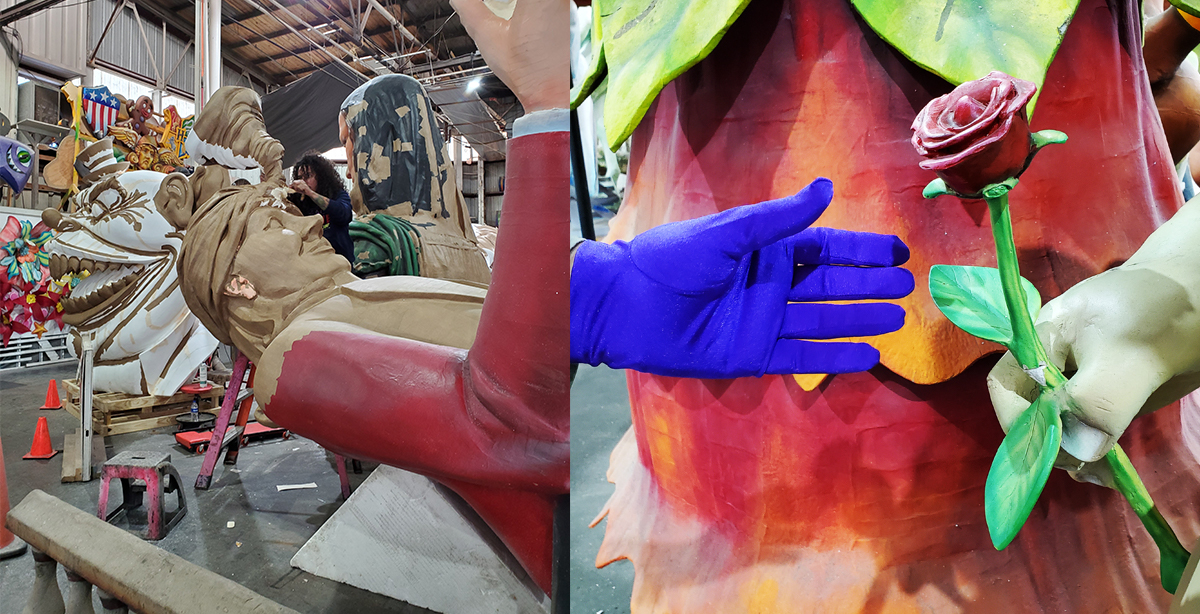 This February is loaded with colorful parades in the city of New Orleans, different krewes have been preparing their floats and costumes for months and it’s time to show them to the world. We visited some of the artists and their work is absolutely amazing. The base is normally made out of layers of thick styrofoam, that is after carved to give them shape and dimension. Most of the floats are recycled. Year after year they made some substantial changes, they can replace heads, hands, legs or any other pieces. and add layers of paper, paint and glitter before they take them out and about for one more year.