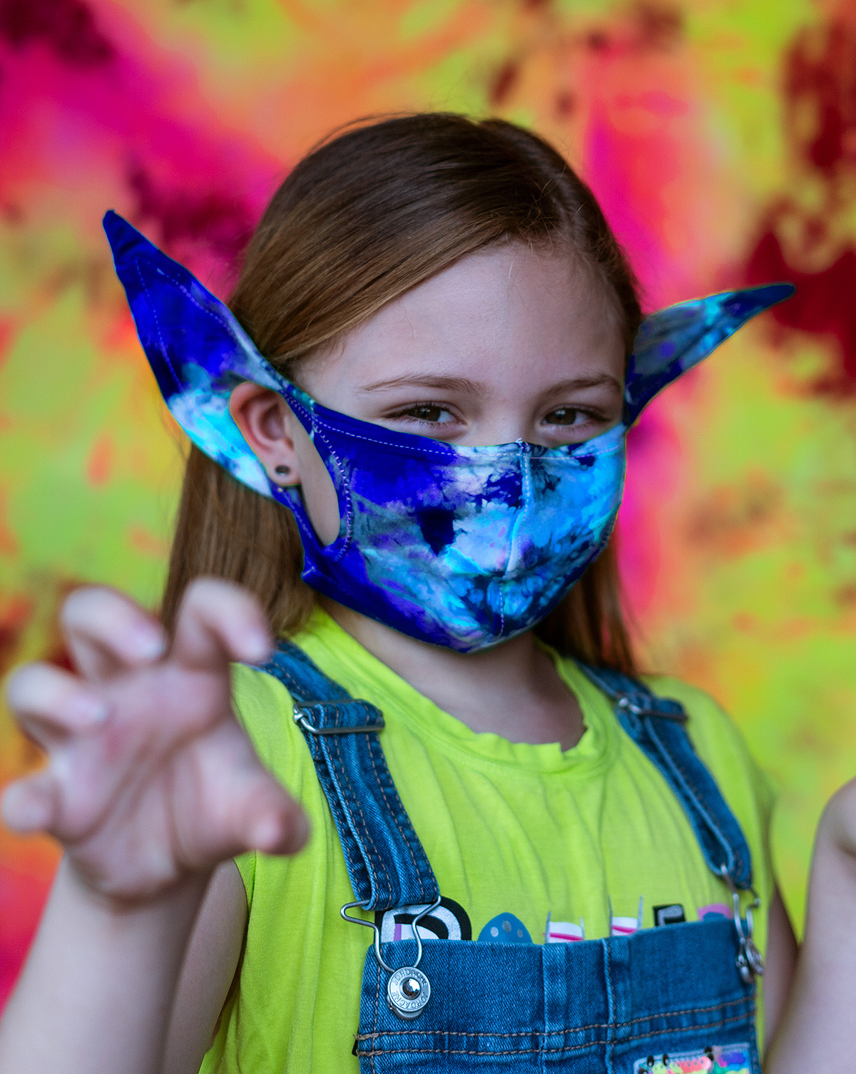Talk about functional and fun! Our elf kids masksor face coverings are a collaboration with the local artist Kikimora Fashion, they are artisanally made with love in Miami and hand dyed in our 7 unique splash colors. They are breathable and made of one layer of stretchy tricot. They fit kids ages 5 to 12 and the ears have a thin wire heart that helps you move them and shape them as you wish, so you can change them as many times you want.