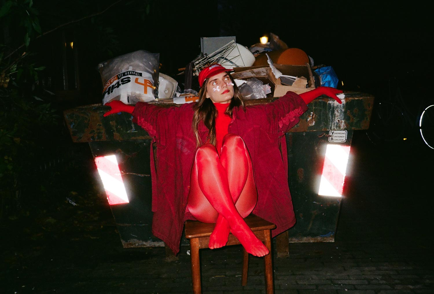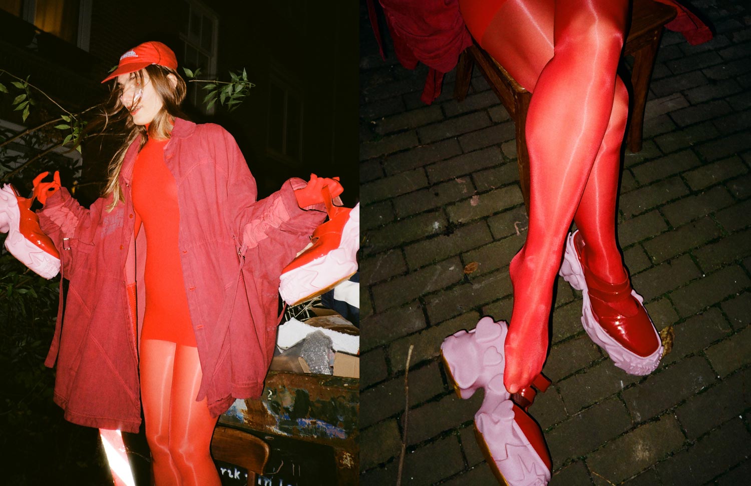 Who said red tights had to stay prim and proper? This street-style inspired look gives holiday dressing a rebellious edge. Styled with a scarlet red armsocks shirt, oversized jacket, and the most delightfully bizarre pink clogs by Ruben Jurrien, this outfit is a mood. PS! Don't forget to add a distressed thrifted hat.
