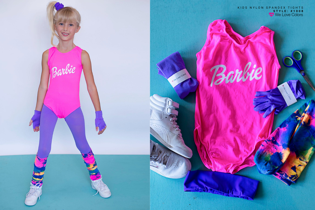 Example: Example: For an 80’s aerobics look, start with our purple tights #1008 and matching gloves #3171. Cut off the fingertips for that retro workout vibe, add a neon leotard, leg warmers, and a scrunchie. With just a few accessories, you get a bold, stage-ready costume that pops in every photo.