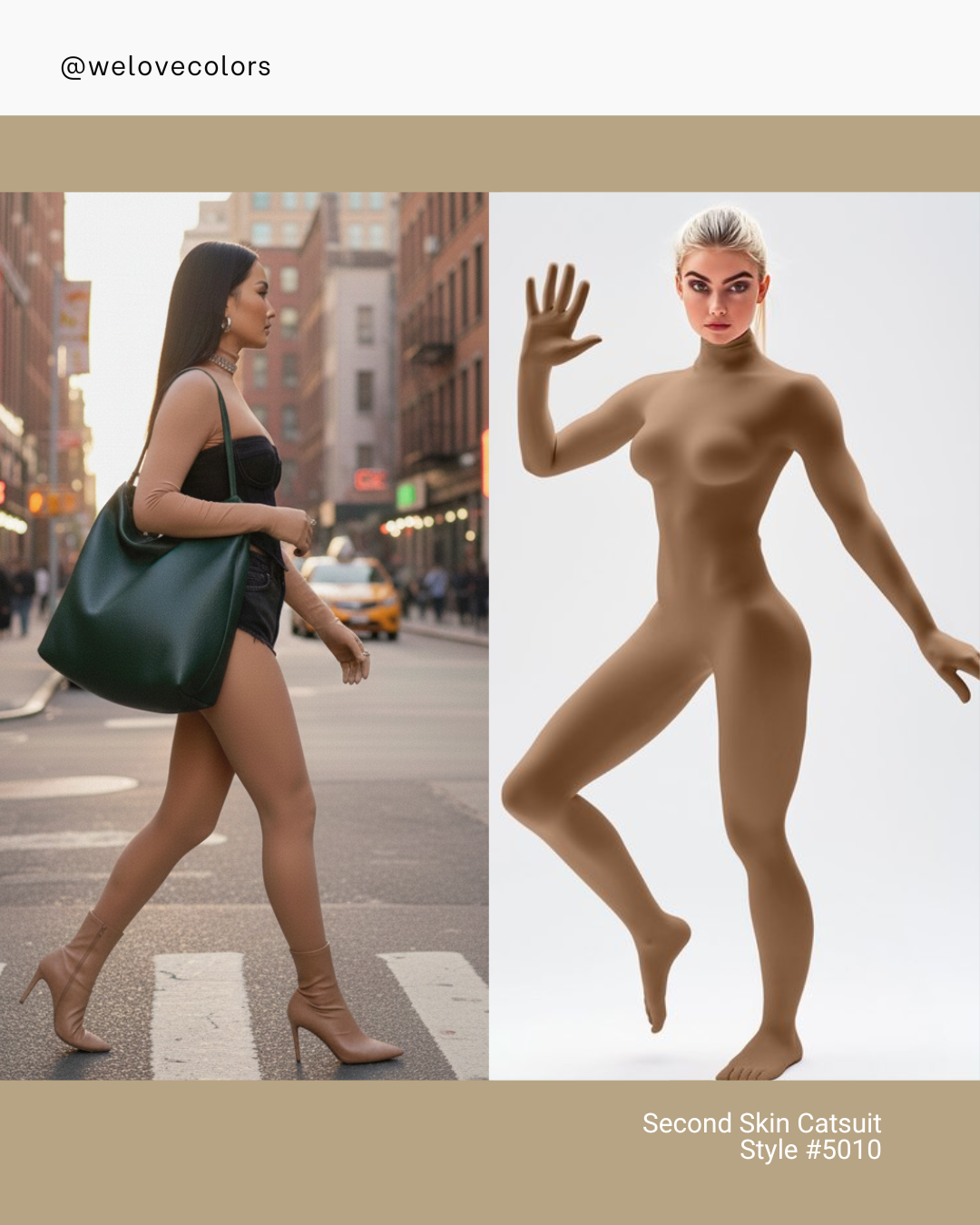 MatteUndergarments: This is the opposite effect. Since we offer seamless products this can be very realistic. You choose from a full catsuit our Style# 5010 or go for shirt (Style# 5012) + Tights (Style# 1053) combo.