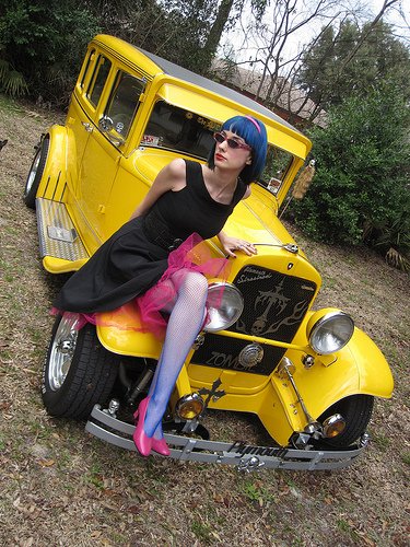 Amber Osborne of Miss Destructo Wearing: We Love Colors Medium Blue Wide Mesh Fishnets