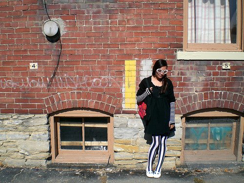Lorena Cupcake of Juliet Banana Wearing: We Love Colors White Vertical Striped Thighs and White Black Striped Arm Warmers INSPIRATION: black and white cookie