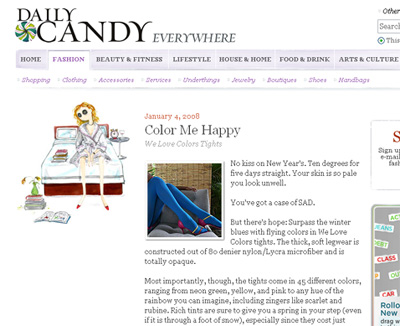 Insiders guide Daily Candy to fashion features We Love Colors tights…Color Me Happy!Thanks, Daily Candy!