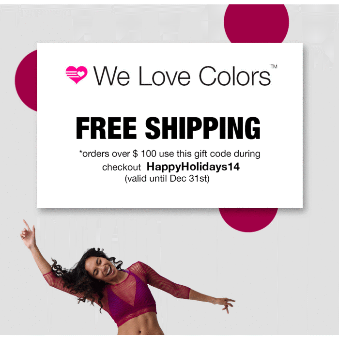 700700The holiday season We Love Colors has a gift for all of you. Get free shipping until December 31st on all orders of $100 or more