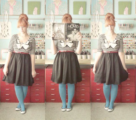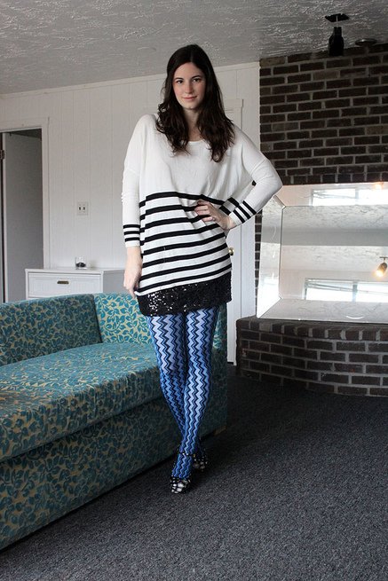 1024683Joelle of The Owls Are Not What They Seem Wearing: We Love Colors Vertical Jagged Striped Tights in medium blue