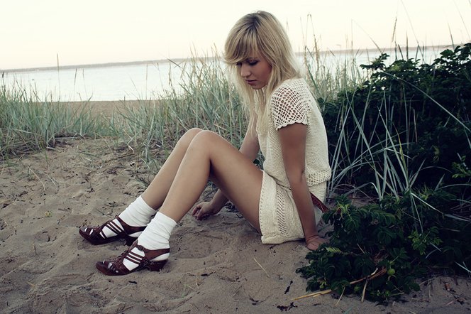 Merily Leis of Sequin Magazine Wearing: We Love Colors Ivory Nylon Socks As you can see I'm still in the heels+socks mood
