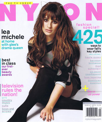 420350Glee's drama queen Lea Michele is on the cover of Nylon's TV issue. This month's Nylon also mentions how television rules the nation! Colored socks from We Love Colors are worn in the Southern Exposure section