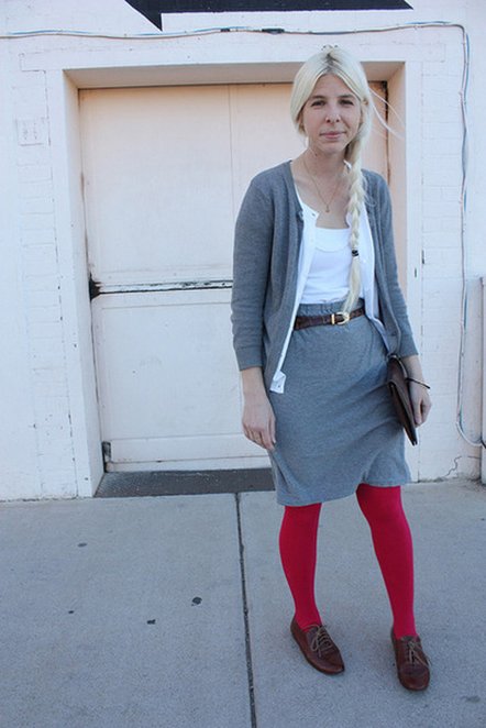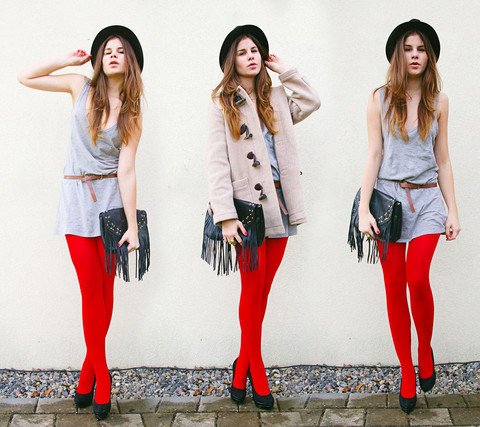 427480Michèle of Beware of My Heels Wearing We Love Colors Microfiber Tights in scarlet red
