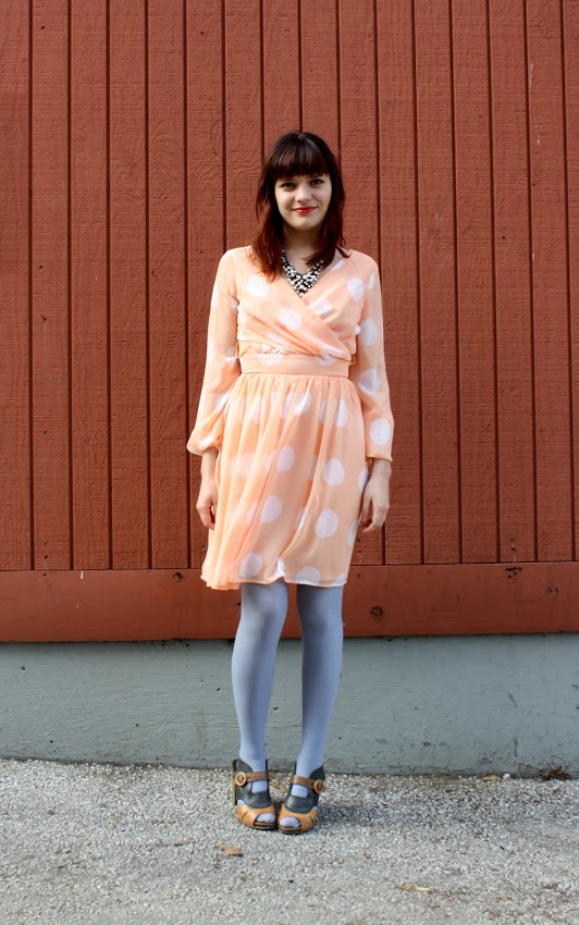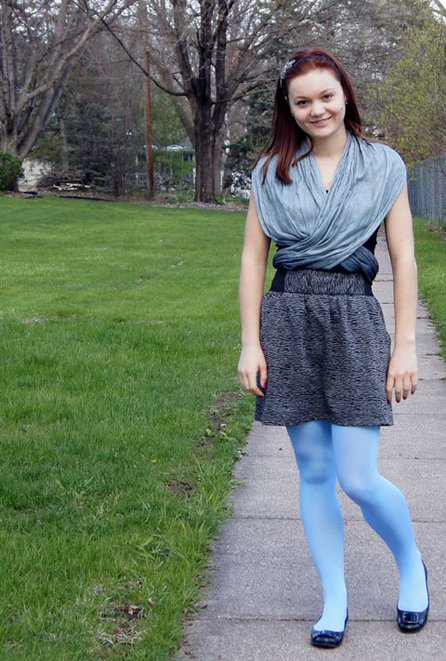 Katy from Kansas Couture pairs a flowy chiffon dress with We Love Colors tights in her latest blog post