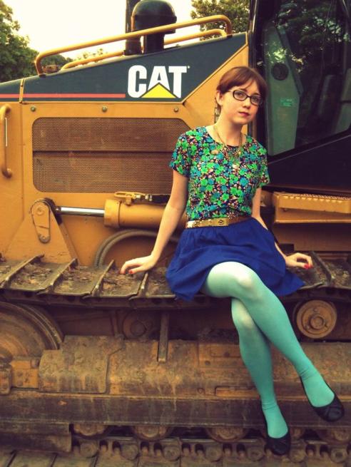 Trendsetter: Rebecca Stice of The Clothes Horse Wearing: We Love Colors Spruce Green Microfiber Tights My outfit today is rather an odd hodgepodge of winter and spring pieces