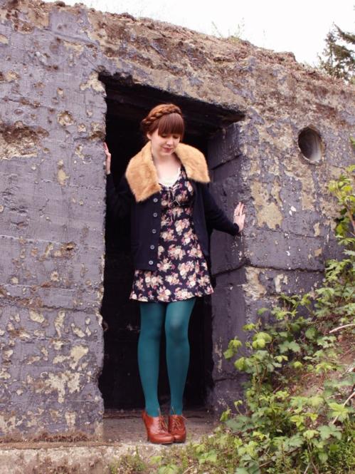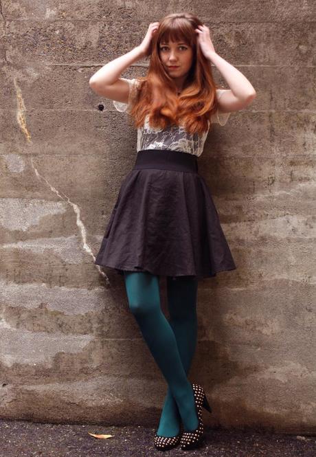 Rebecca of The Clothes Horse via Minkette Wearing We Love Colors Microfiber Tights in spruce green