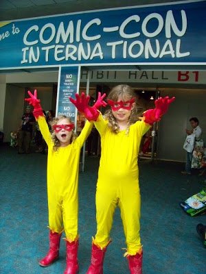 400300We Love Colors Yellow Kids Unitard helped make these exciting Firestar costumes a complete success at this year's Comic-Con International in San Diego