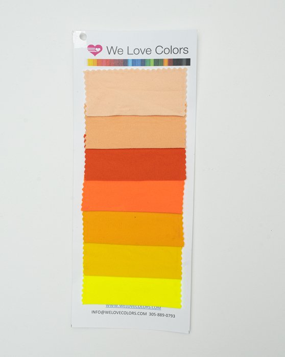Have the full We Love Colors shade selection right at your fingertips! Our color cards are a useful tool to help you choose the best color for any project. You can choose to get a color guide with all our 50 signature solid colors or get a card with one of our color families. This color card works as a reference but please consider that the shades may vary slightly between product styles due to fabric composition. Each color card is hand made with love.