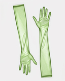 Our sheer gloves have been crafted from 100% nylon for a comfy, durable and breathable fit. Designed as one size fits most. 20 inches long, the palm width laying flat is 2.7 inches and stretches one more inch if needed. These versatile gloves are perfect for any occasion, from special events to everyday. With an amazing selection of 60 colors, you can find the perfect pair to match any outfit. Add a touch of texture to your wardrobe with these must-have accessories.