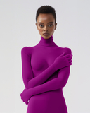 We have been working on this product for over 6 years, we finally have a fitted mock neck shirt, seamless torso, arms and fingers. It features a 5 inches seam on the shoulders to make it fit like a second skin. There's no hem on the neck or around the waist, the knitting of this shirt allows you to stretch it and wear it as a dress and even turn it into a bodysuit, or perhaps cut wherever you need without running into run issues, pun intended. For example: You can cut a slit on the wrist area if you wish to take the gloves off. We leave it up to you.