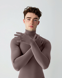 We have been working on this product for over 6 years, we finally have a fitted mock neck shirt, seamless torso, arms and fingers. It features a 5 inches seam on the shoulders to make it fit like a second skin. There's no hem on the neck or around the waist, the knitting of this shirt allows you to stretch it and wear it as a dress and even turn it into a bodysuit, or perhaps cut wherever you need without running into run issues, pun intended. For example: You can cut a slit on the wrist area if you wish to take the gloves off. We leave it up to you.