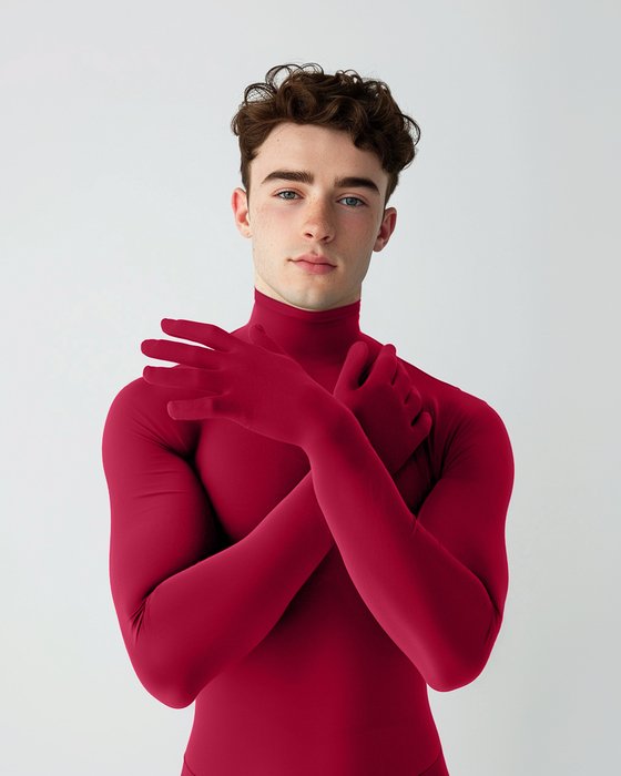 We have been working on this product for over 6 years, we finally have a fitted mock neck shirt, seamless torso, arms and fingers. It features a 5 inches seam on the shoulders to make it fit like a second skin. There's no hem on the neck or around the waist, the knitting of this shirt allows you to stretch it and wear it as a dress and even turn it into a bodysuit, or perhaps cut wherever you need without running into run issues, pun intended. For example: You can cut a slit on the wrist area if you wish to take the gloves off. We leave it up to you.