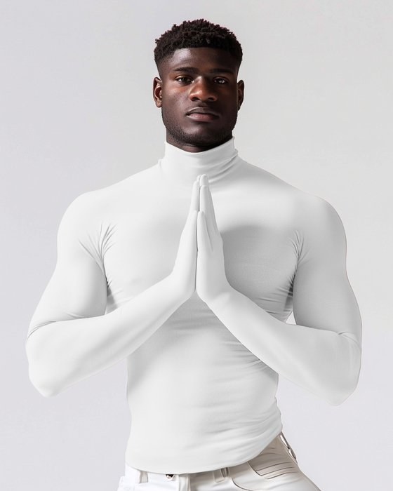 We have been working on this product for over 6 years, we finally have a fitted mock neck shirt, seamless torso, arms and fingers. It features a 5 inches seam on the shoulders to make it fit like a second skin. There's no hem on the neck or around the waist, the knitting of this shirt allows you to stretch it and wear it as a dress and even turn it into a bodysuit, or perhaps cut wherever you need without running into run issues, pun intended. For example: You can cut a slit on the wrist area if you wish to take the gloves off. We leave it up to you.
