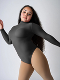 Meet our seamless mock neck long-sleeve bodysuit, the perfect combination of comfort and style. Designed with a super soft, second-skin feel, this bodysuit hugs your body in all the right places while keeping you comfortable throughout the day. The seamless design on the torso and neckline ensures a smooth, streamlined look, perfect for layering or wearing solo.