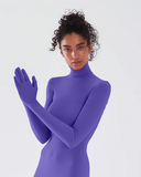 We have been working on this product for over 6 years, we finally have a fitted mock neck shirt, seamless torso, arms and fingers. It features a 5 inches seam on the shoulders to make it fit like a second skin. There's no hem on the neck or around the waist, the knitting of this shirt allows you to stretch it and wear it as a dress and even turn it into a bodysuit, or perhaps cut wherever you need without running into run issues, pun intended. For example: You can cut a slit on the wrist area if you wish to take the gloves off. We leave it up to you.