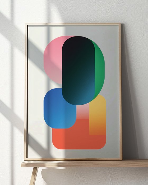 This colorful digital artwork features vibrant colored shapes on a textured paper. The collection includes 6 posters, you can purchase them all or a single design. After purchase you will receive a jpg file, this is a digital product, no physical art will be shipped. The file you will receive is ready for print in high resolution and it can be printed at home or any professional printing company. For best results choose fine art paper with matte finish. This poster has been designed to fit a size 24X36”. If you want to print smaller sizes the file will work perfectly fine. Not recommended for larger sizes than the one mentioned above. Due to the nature of this product all sales are final no refunds or returns are allowed after purchase.