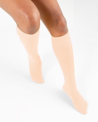 The perfect blend of classy and comfortable, our sheer knee highs are designed to keep you looking great, feeling confident, and radiating style in every step. Our nylon/spandex sheer knit blend gives a sleek fit and silky feel that you can wear for all day comfort. You can pick a new color every day with our 51+ colors, to choose from! This style fits plus sizes as crew length