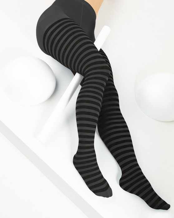 Our black striped tights are a fun addition to your fashionable looks and are great for layering. Let our durable and sporty striped tights add a little sizzle to your standard black tights and create a fashion frenzy that they will find hard to ignore. Perfect for any occasion, available with black and any of our 51+ colors striped. Available in plus sizes!