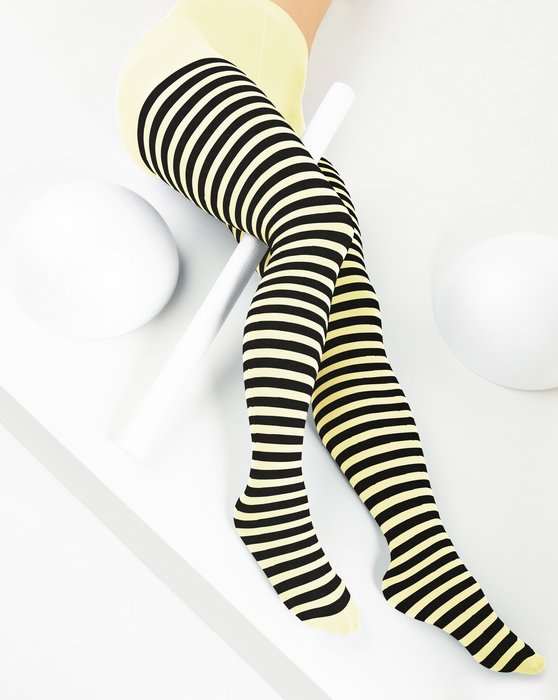 Our black striped tights are a fun addition to your fashionable looks and are great for layering. Let our durable and sporty striped tights add a little sizzle to your standard black tights and create a fashion frenzy that they will find hard to ignore. Perfect for any occasion, available with black and any of our 51+ colors striped. Available in plus sizes!