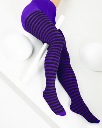 The stripes begin at the upper thigh and continue down the leg with the upper part remaining a single solid color. Perfect for any occasion, our striped tights are also available in plus sizes 51+ colors